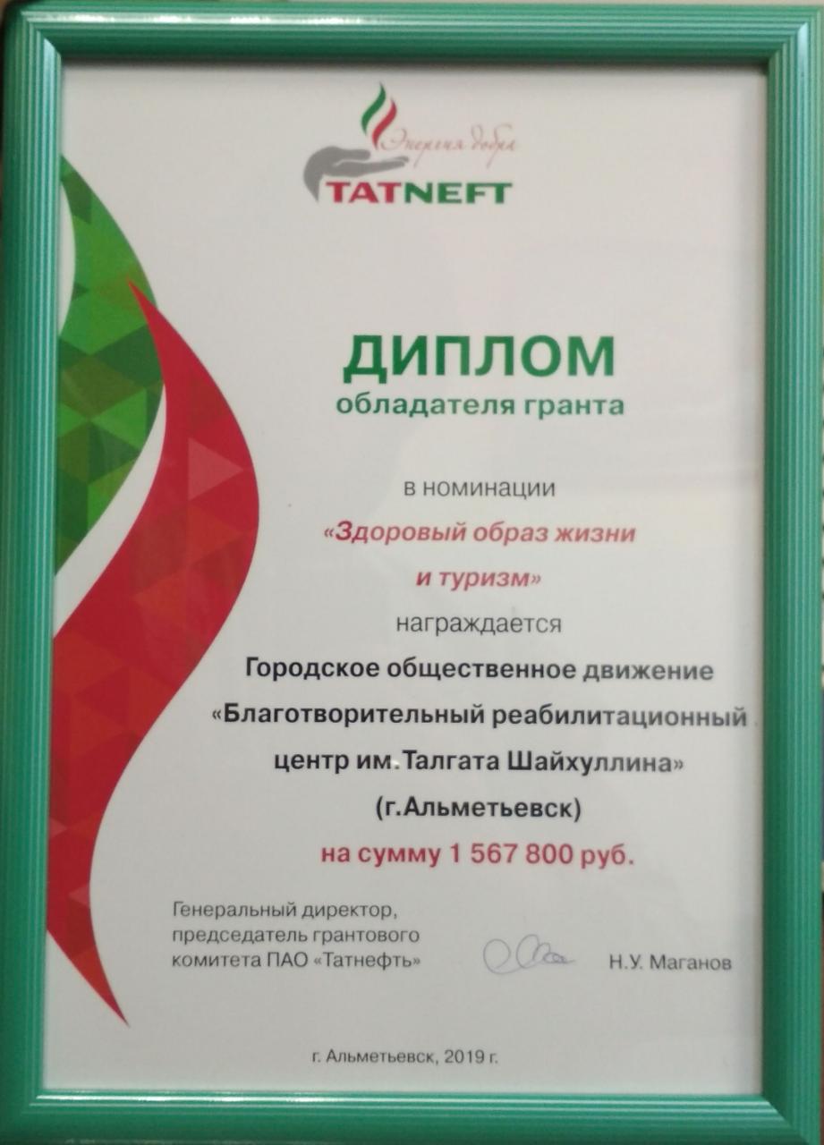 Вторая новость - наш центр имени Т.Шайхуллина получил грант в номинации "Здоровый образ жизни и туризм"